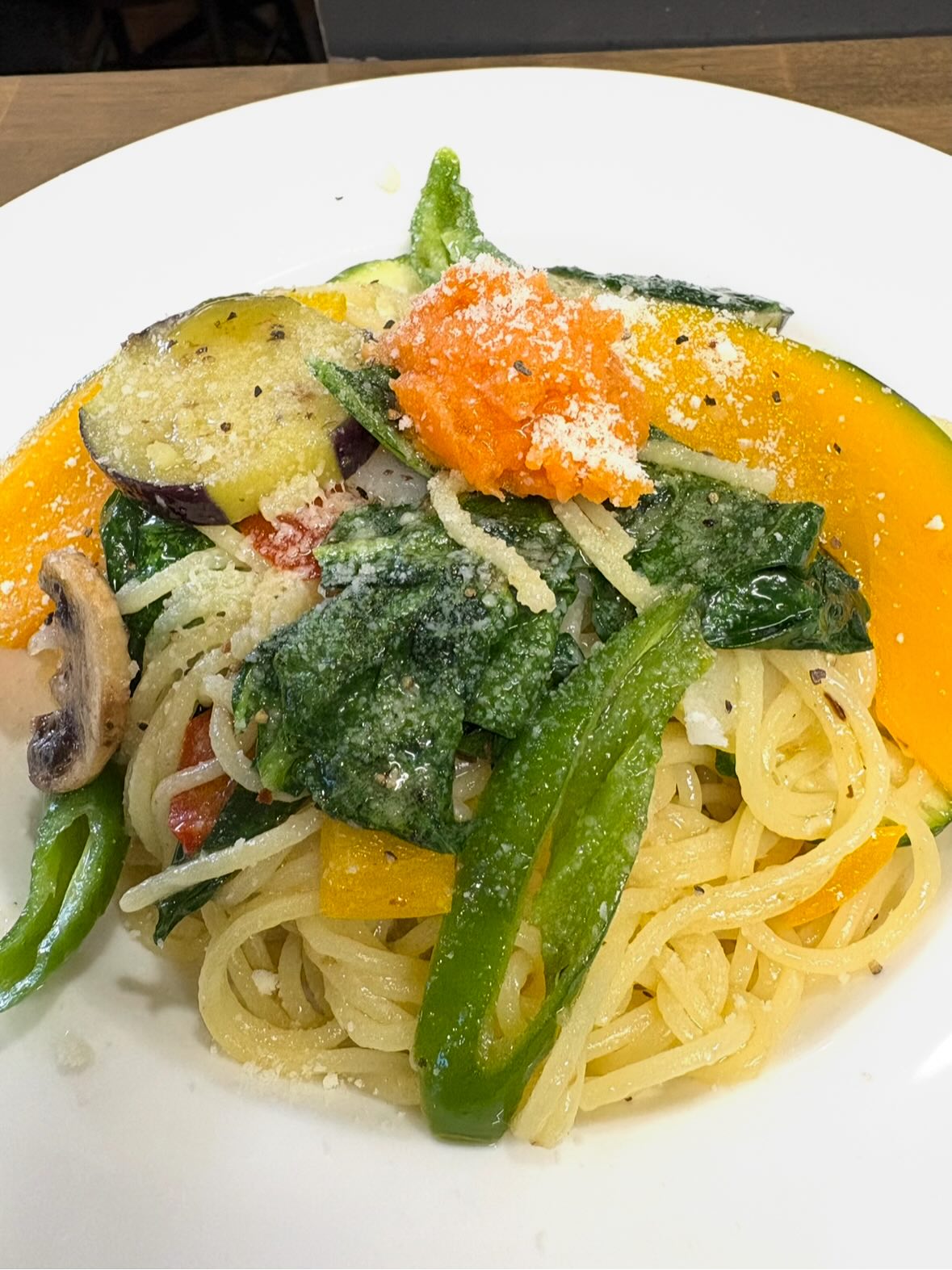 お野菜たっぷりの 「ペペロンチーノパスタ」も